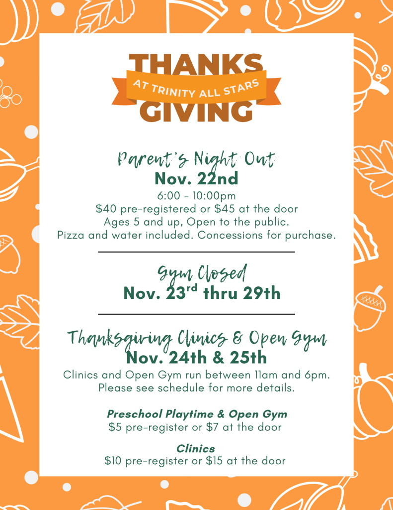 If you would like to fill out your forms before you come, please download form, fill out, and print or email to office@trinityallstarsgym.com